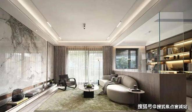 电视背景墙选用带有东方意蕴的万里河山石材,颜值超高!