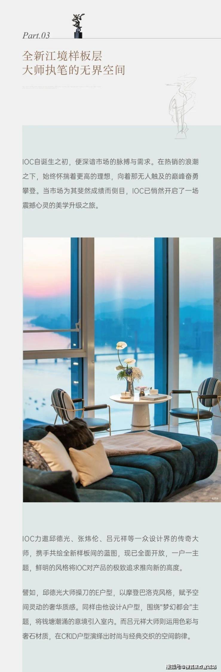 用高度收藏城市,一直是拥有野心和梦想的人的目标,在杭州板块之巅奥体,收藏一套由酒店行业品牌之巅W加持、拥有一线江景的奥体在售第一高度IOC·潮鸿,就是收藏这座城市真正的顶级资产。建筑面积约334-405-700㎡!总价1400万起。天幕瞰江大户型,国际一线品牌高定奢装(参考在15000/㎡)