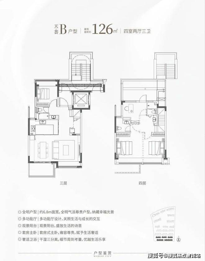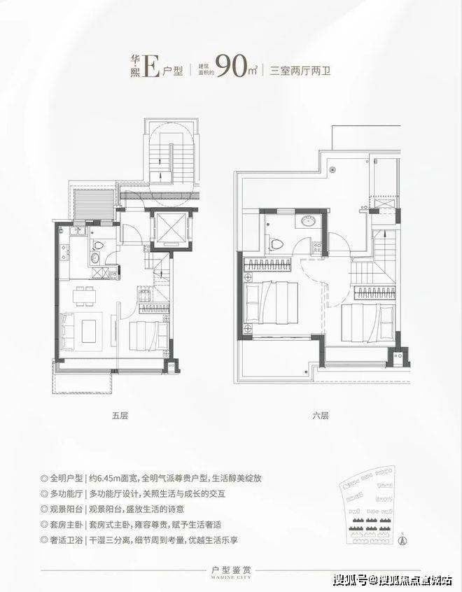 特别是这个E户型,建面仅约90㎡对于想住叠加但预算有限的购房者来说面宽约6.45米,上下动静分离带是个不错的选择!
