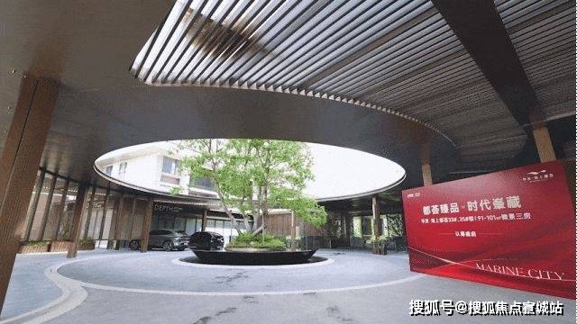 华发·海上都荟的主入口做了环岛式酒店大堂设计,风雨回廊在天气炎热或者下雨天时让人更舒适,融合了酒店的精致感、艺术感,给人仪式感的入户体验。