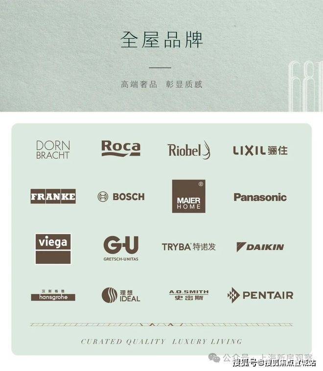装修标准:项目采用业内领先的装修标准,配备德房家紫铜管、当代水龙头和 Pentair 净水器、大金 F 系列空调、博世电器、Roca 洁具、汉斯格雅淋浴、日本骊驻橱柜、玛雅衣柜等,打造奢华品质居住体验。