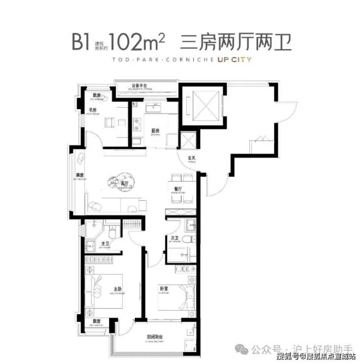 建面约102㎡3房2厅2卫▼
