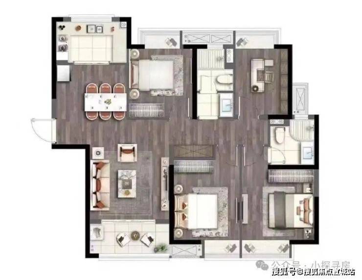 真正的品质之选从不是面积的简单叠加,而是对空间场景的深度解构与重构,四房两厅两卫户型,带来大平层级的豪宅居住体验,足以匹配高阶人生,甚至一个家族的居住需求。