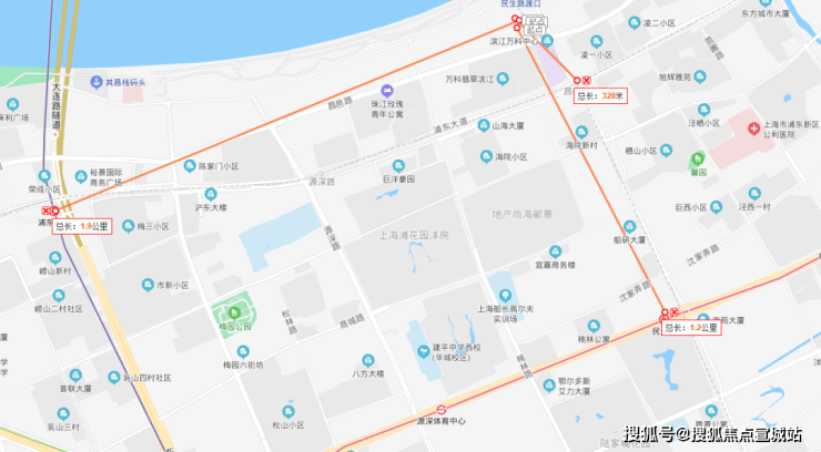地块南面是万科翡翠滨江、西侧陆家嘴壹号院、恒大滨江华府,东侧民生路渡口,大致位置如下图: