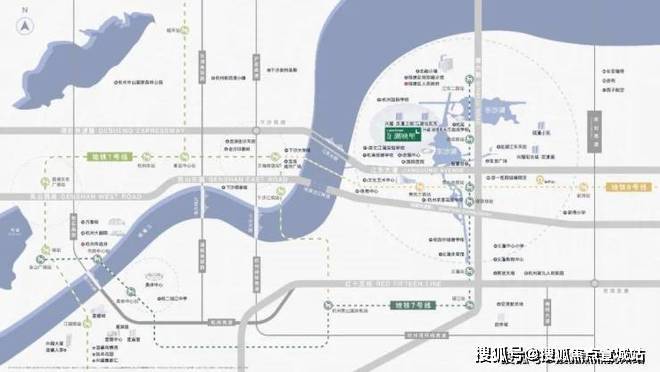 地铁7号线启成路站(已通车):项目东侧800米左右即为7号线启成路站,途径五个站点到达萧山机场、约半个小时可到达奥体、钱江新城、吴山广场等重要行政及商业区域.地铁8号线(已通车):青西三路站,无缝衔接核心区与下沙开发区,换乘1号线可通往杭州东站、武林商圈、西湖、滨江等重要区域.
