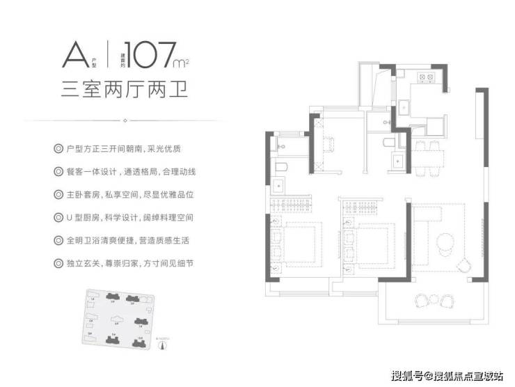 尤其是项目目前建面约107㎡的主力户型,更是集LDBK一体化、玄关入户、动静分区设计、U型厨房、双卧飘窗、强大收纳等多重优势于一体,在功能性与舒适度上几乎都做到了极致!