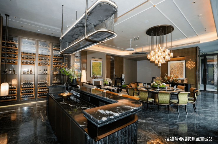 约2700㎡社区中心,参照“九潮纳客”体系,融合下沉式景观庭院与高端社区会所,以奢石流水工艺成就奉贤首个社区私宴厅、水幕园林、日咖夜酒、健身房、棋牌室、阅读空间、红酒雪茄吧等多元功能区。