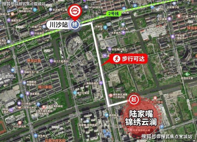 除此之外,陆家嘴锦绣云澜位于川沙首站,距离川沙站直线约750米,步行可达!(数据来源:百度地图)示意图