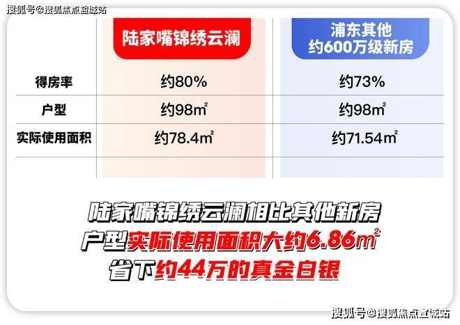 也就是说,陆家嘴锦绣云澜室内的各个空间,其实都要比同级别新房更大。这多出来了约6.86㎡房源,直接为业主省下了约44万的真金白银。