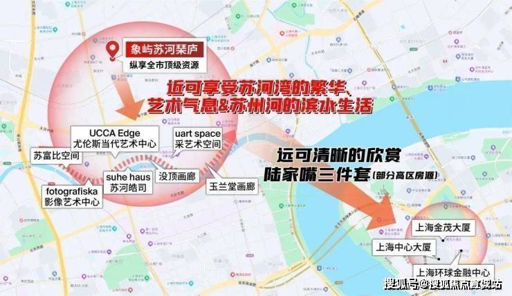 没顶画廊、suhehaus苏河皓司、苏富比空间、UCCAEdge尤伦斯当代艺术中心等艺术机构也都选址苏河湾,进一步升华了苏河湾人文、艺术气质。