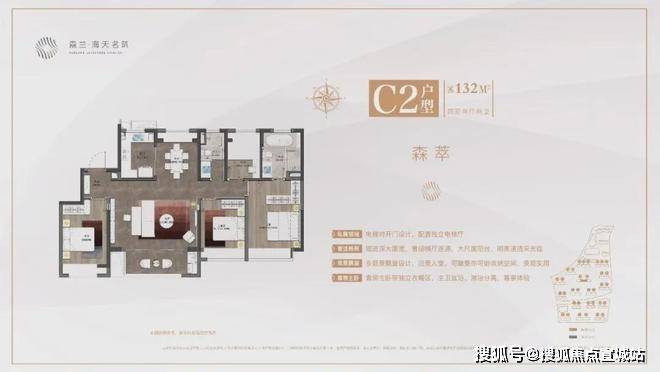 户型特点:户型设计兼顾功能性与舒适度,全明格局,南北通透,部分户型拥有大面宽阳台或飘窗,采光和通风效果良好。
