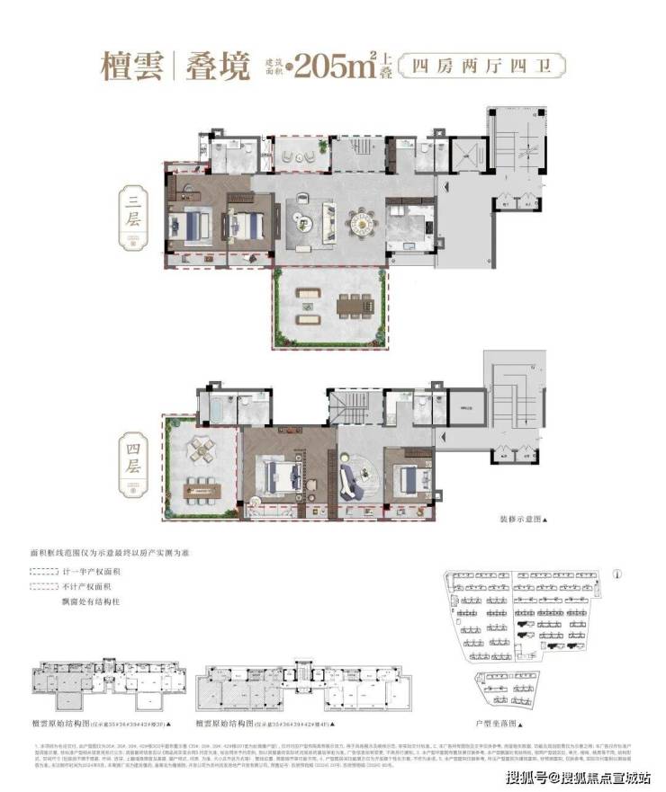 下叠:总高6层下叠163㎡(5平花园)、总高5层下叠172㎡(40平花园)、总高4层下叠195㎡(66平花园)