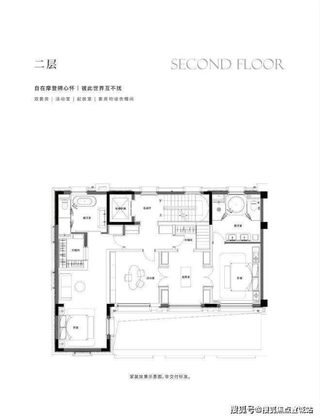 地下1F志趣空间,约7.2m层高,私人菁英社交圈层。首层花园入户,大横厅会晤场域,与时代精神际会。二三层静谧于心,起居室多套房设计,梧桐下的栖心之所。屋顶露台、花园庭院,超大附赠面积,藏身心于天地恢弘。