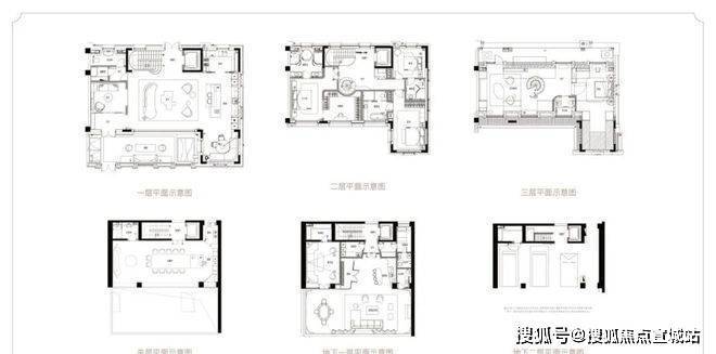 别墅户型:主力户型为 280-540㎡,主力 360㎡户型做到 4 开间朝南,15 米面宽;540㎡类独栋实现 19.5 米超大面宽与 7.2 米挑高客厅,地上 3 层加地下 2 层的设计搭配全明采光井,私家庭院面积为 30-80㎡。