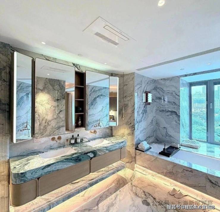 豪宅中,会所+泳池已经成为市场标配。但是万科中興傲舍,真正做到了 “把艺术作为生活的一部分” 。植物园泳池放在了2楼,选用了皮革面的绿色石材,营造一种树影斑驳的感觉。里面的绿植不是装饰,都是鲜活的、精心照养的。
