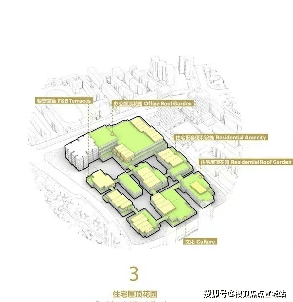 根据意向效果图,雅宾利4期预计为开放式社区设计,采用空中花园将社区立体连接在一起:项目将会采用地面抬高3层的设计,其中3层以下为商业底盘。