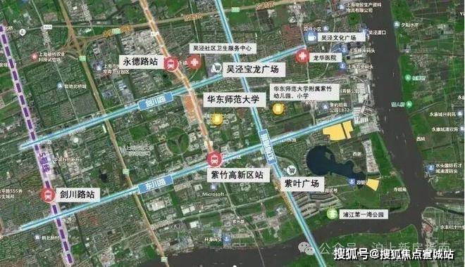 地块所在的紫竹区域占据浦江上游第一湾独特地理位置,核心区域有闵行第一大湖兰香湖,水域面积广阔,岸线绵延,湖光潋滟。