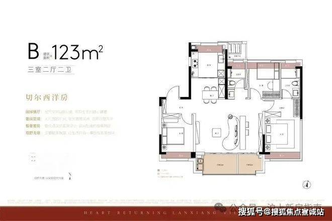 户型信息:主力户型为建面约 123-230㎡的三至四房。其中,建面约 123-125㎡三房两厅两卫洋房采用四开间朝南布局,客厅面宽约 4.5 米,南北通透,搭配 270° 转角飘窗与 LDKB 一体化空间。