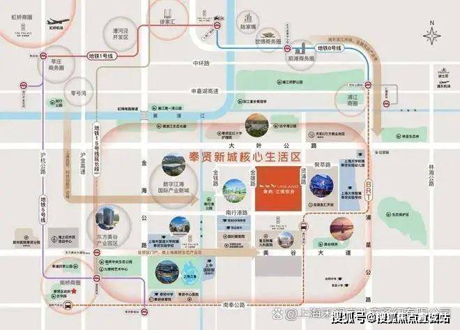 交通配套:项目紧邻地铁 5 号线奉贤新城站,步行约 10 分钟可达,周边还有金海公路、南奉公路等主干道,自驾出行也十分便捷。此外,BRT 奉浦快线接轨地铁 8 号线,可直抵前滩。
