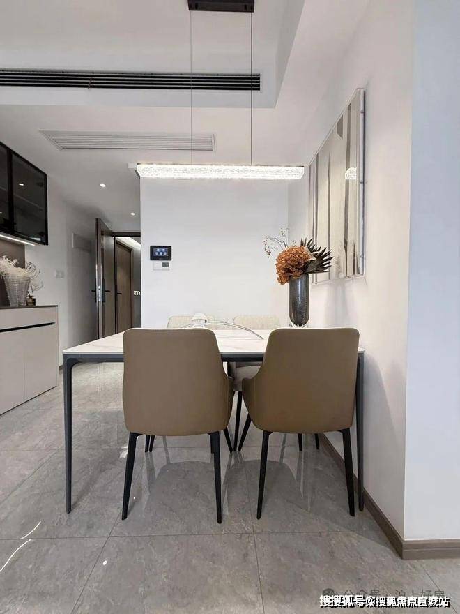 空间的设计省去了多余的过道,餐客厅一体,三房户型,可以满足新婚家庭到三口之家的升级,还能拥有一间独立书房,后期配置榻榻米,也可灵活用作客房,功能性非常完备。