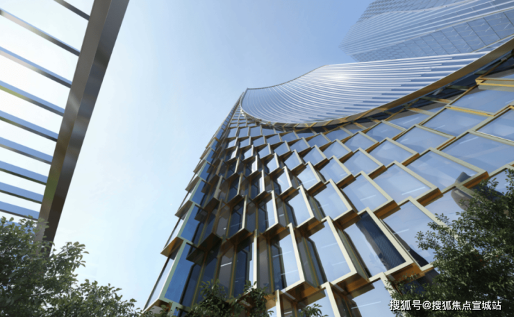 建筑外立面设计灵感来源于杭州自古享有盛名的"织锦",流畅的线条犹如灵动的"丝绸"倾泻而下,映射着奥体充满活力的城市景观。项目因地制宜,不同于传统的以商业为主的高密度综合体,引入各式裙楼、极具活力和公共性的开放空间,创造一个大尺度的“城市客厅”,打造一个动态有活力的村落式城市综合空间。