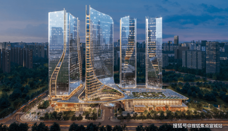 项目总建筑面积26.05万平方米,由4栋140米塔楼簇拥奥体公园的优美景观,形成欢迎的态势,邀国内外游客共襄盛举。其中T1、T2为珍品公寓、T3为酒店(安达仕酒店)、T4为办公楼。由会议中心、酒店宴会厅、商业、艺术中心及社区配套组成的基底。
