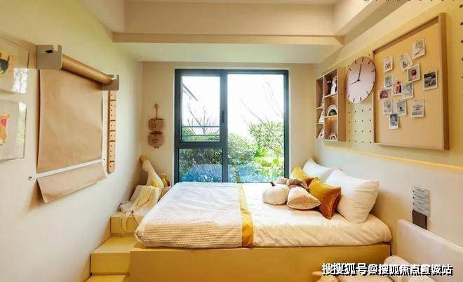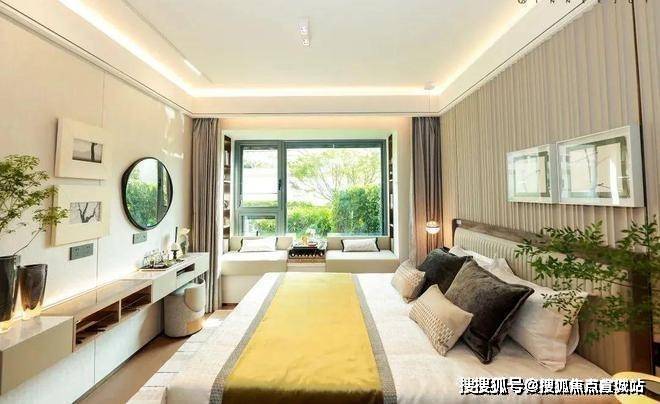 每一间卧房皆设飘窗,为每一颗热爱生活的心,预留一方浪漫天地.主卧参考酒店式套房,拥有衣帽间和独立卫浴间,尊重日常生活的私密感.与此同时,卫浴间的飘窗附设壁龛,可用于收纳,增加实用性.