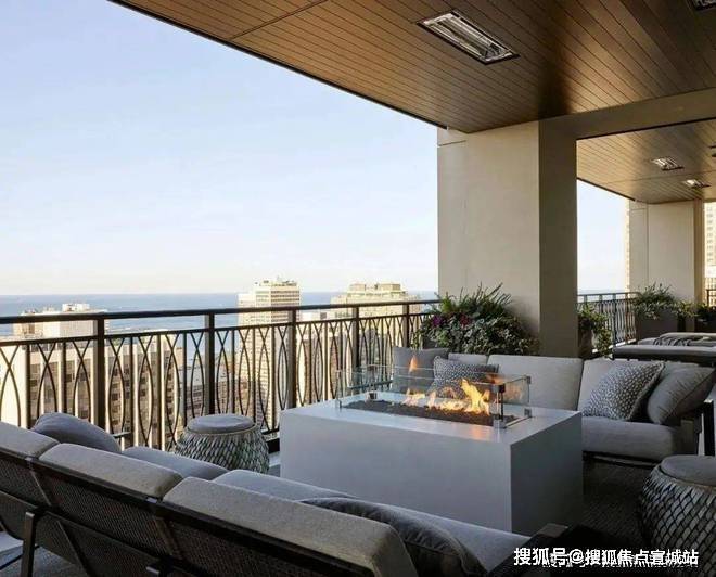户外露台配备了三座躺椅,在这可以欣赏到密歇根湖的壮丽景色。