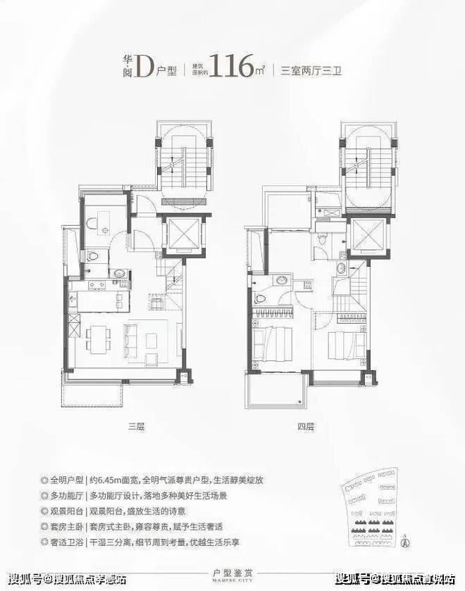 三阳台及露台设计,相比传统平层,可享受更多“别墅”专属功能.