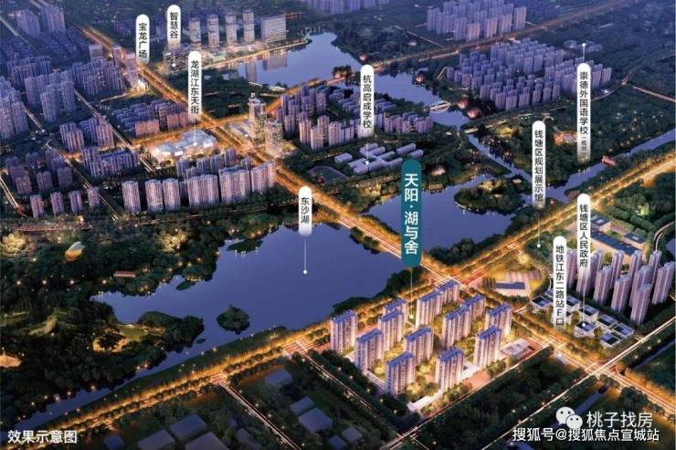 项目南向直面东沙湖、西侧为钱塘区人民政府
