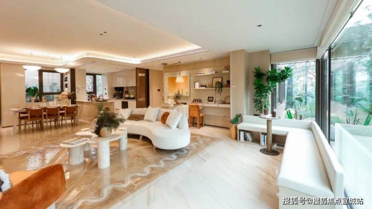 配置岛台的独立餐厅,加上具备单独的采光大尺度飘窗,这不仅是简单的“采光升级+功能升级”,更是直接把自然风景与生活仪式感,直接搬上了餐桌。