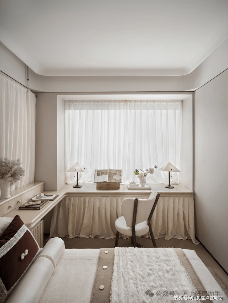 南向卧室的设计更是点睛之笔,通过可开可合的移门,与客厅上演空间魔法,实现卧室、开放式书房、客厅延伸区的三重空间形态。
