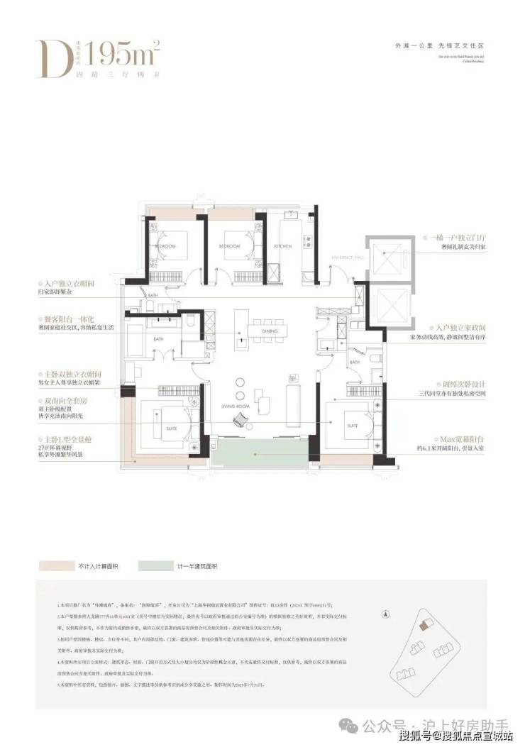 建面约195㎡4房 总价约2700-3300万