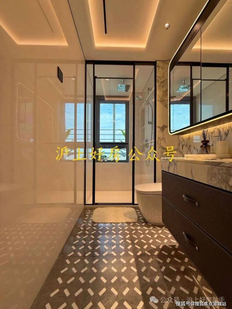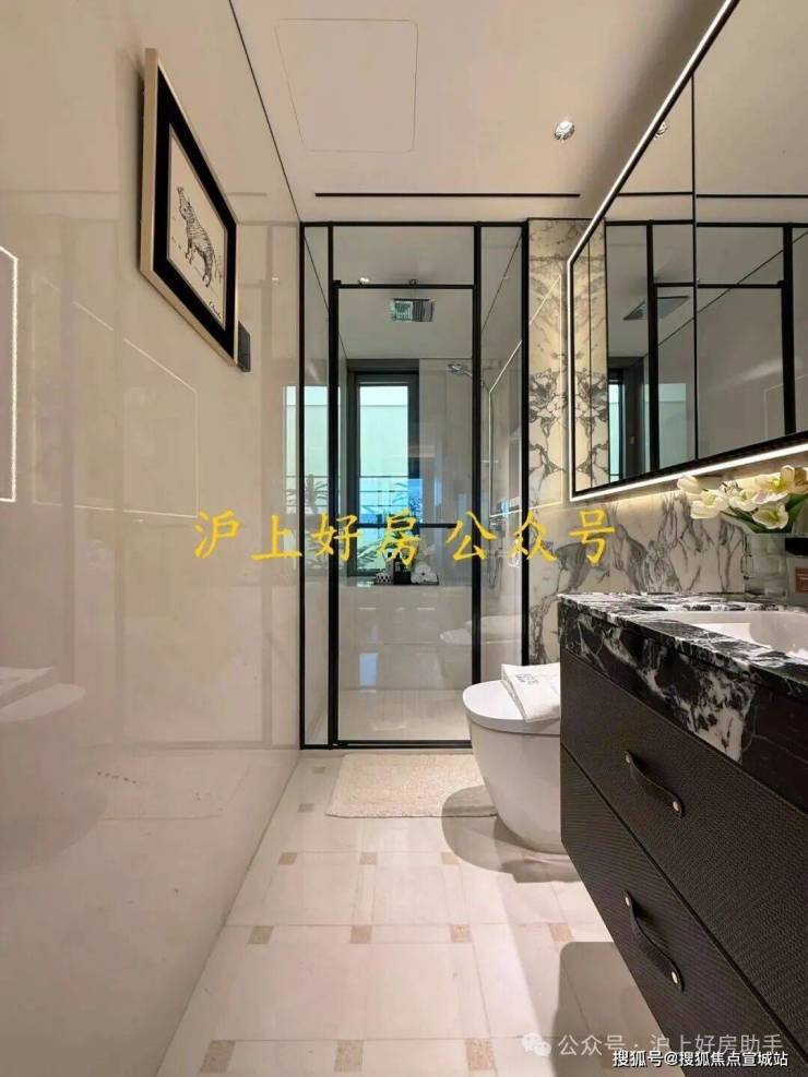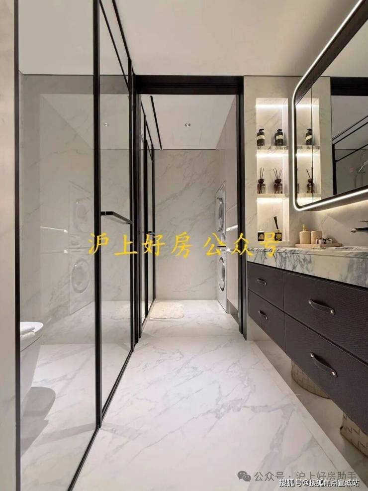 公卫打造独特的四分离系统,实现独立洗漱台、卫生间、淋浴间、洗衣区互不打扰,将酒店化体验引入住宅。