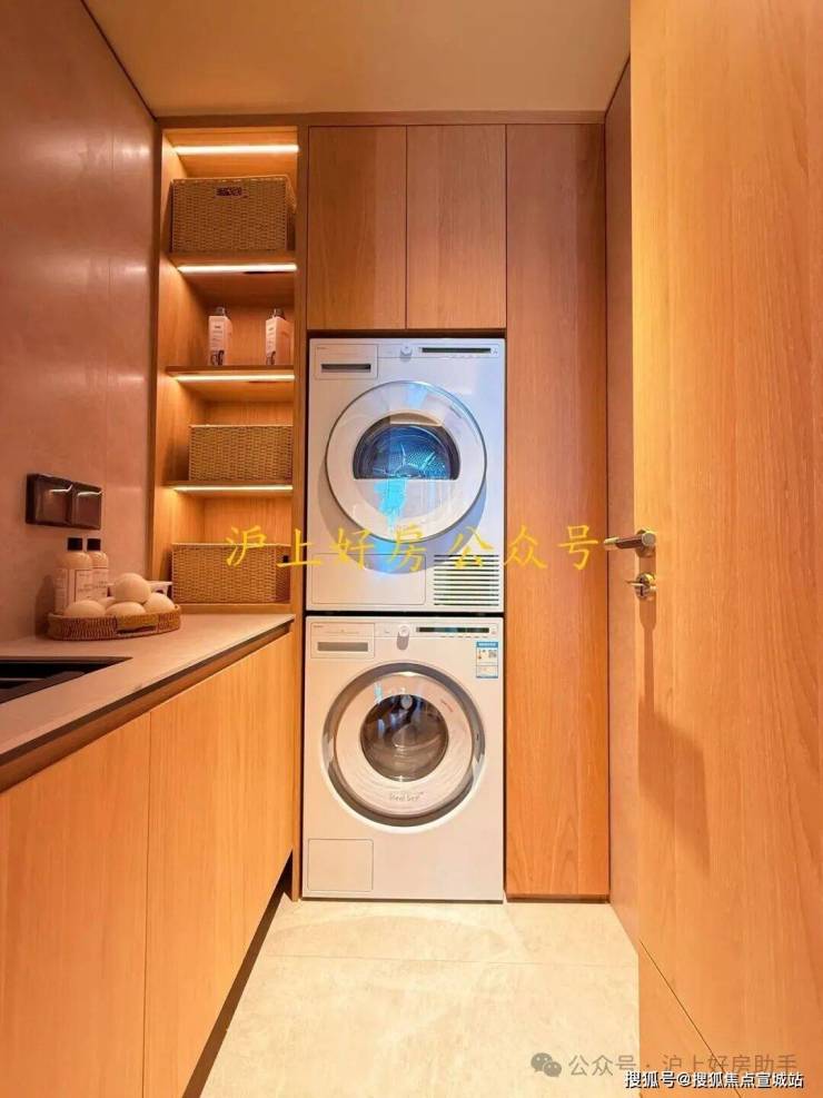 家政间彻底释放了阳台,让阳台成为观景配套或者志趣空间;且位置在进门处,离两个卫生间很近,“洗烘一体”的动线高效。