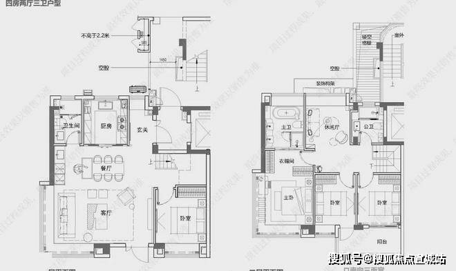 这个户型亮点在于LDBK一体化,做了一个大横厅,一方面尺度感更强,另一方面,可以根据需要设计成茶室、工作台、游戏间等等.