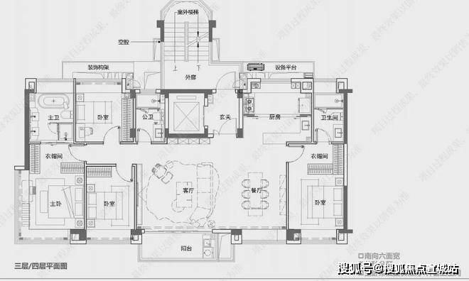 边套户型主卧堪比酒店豪华套房,借了飘窗台面做了双台盆,主卫旁边的飘窗未来可以做成梳妆台;中间套户型主卧,既可以做成步入式衣帽柜,也可以设计一个梳妆台+衣帽柜.