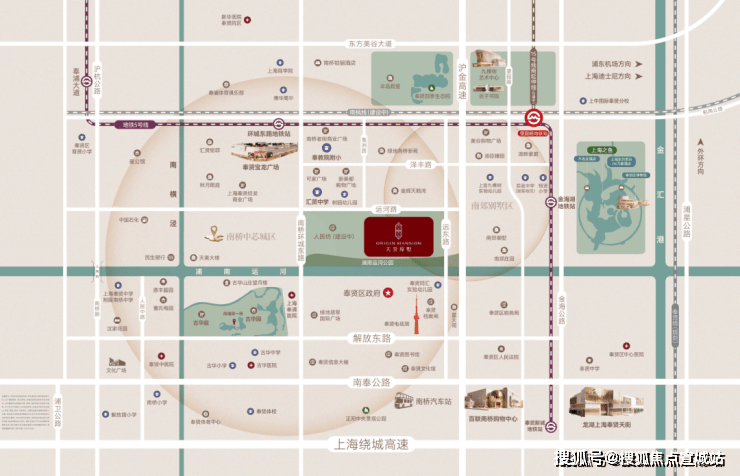 该地块位于南桥核心地段,南侧紧邻浦南运河休闲步道,北侧有S4高速出入口,紧邻地铁5号线环城东路站,1站至望园路站还可换乘15号线(南延伸段在建),进站直达紫竹高新园区和莘庄城市副中心,北侧还有市域南枫线(在建)环城西路站,周边三轨交环绕。