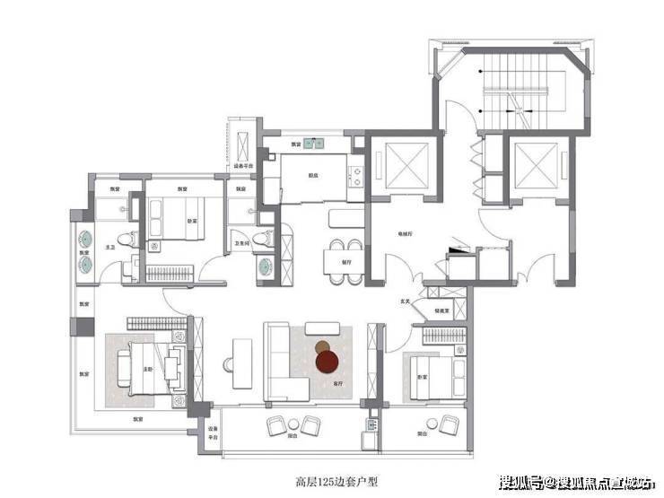 建面约125㎡高层户型
