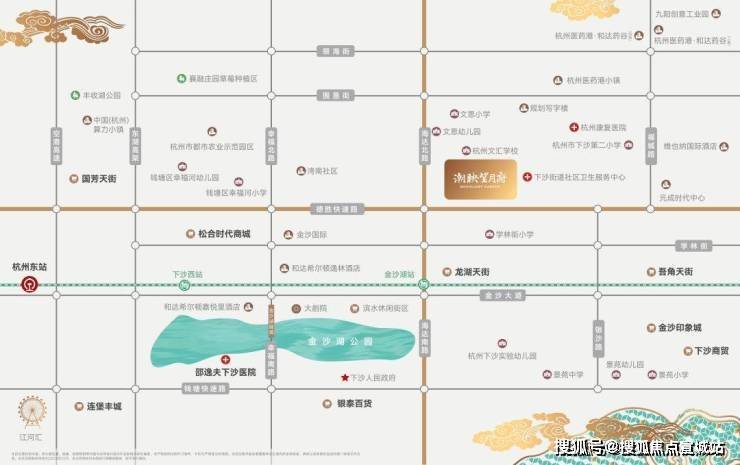商业:周边3公里范围内汇聚了金沙天街、银泰百货、金沙印象城、吾角天街等商场,可以说,在杭州除了湖滨——武林一线,没有哪里的商业资源比这里更丰富。自驾10分钟即可到周边商业,能满足业主的大部分需求。