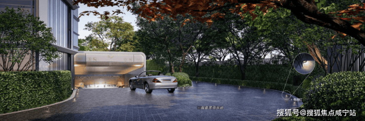比如入户大门配备大面积的金属格栅、局部莫奈奢石。
