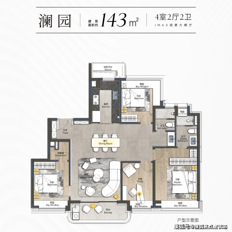 我们以已经开放样板间的建面约143㎡户型为例:
