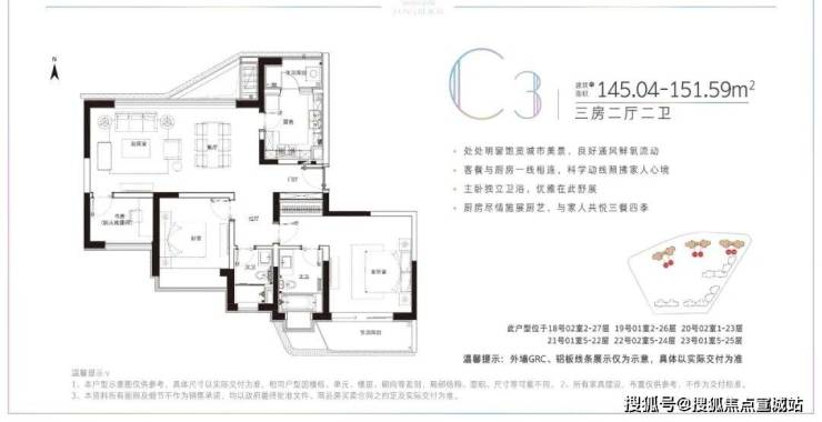 中大户型如123.16-124.47平方米(三房两厅两卫)、145.38-150.37平方米、166.94-169.16平方米(四房两厅两卫)及228.20平方米以上(四房两厅两卫),总价范围约671-1506万元。