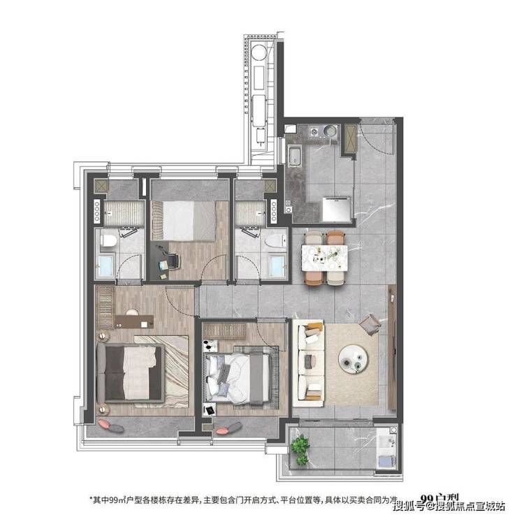建面约99m²3房2厅2卫