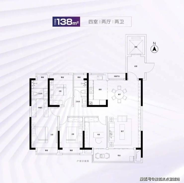方正格局:全明阔绰四室、约13.4M南向四开间,打造尊荣生活格局