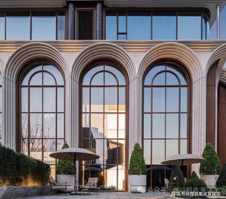 建筑特邀九米总建筑师贺珉,通过运用黄金比例分割、结构层次延展、弧线与棱角、雕塑感美学、斯卡帕序列叠级、空中花园等立体元素,打造金边玉幕、悬浮镜面、艺术框景、外方内圆等建筑标识。