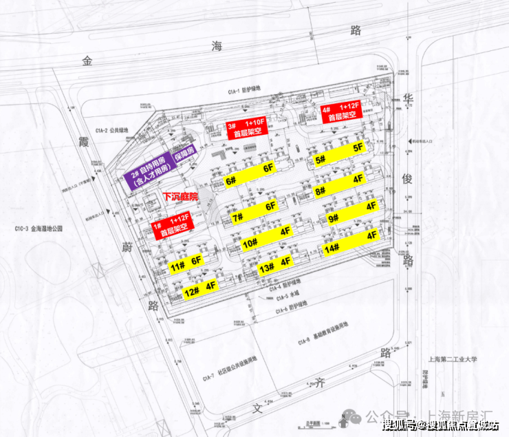 对比来看,新地块优势在于距离地铁站更近,直线距9号线顾唐路站、9号线及12号线金海路站约900米,而且地块面宽更大,户型设计可优化空间多;挑战则是北侧即为金海高架,需投入隔音降噪成本,且涵盖4000㎡商服用地。