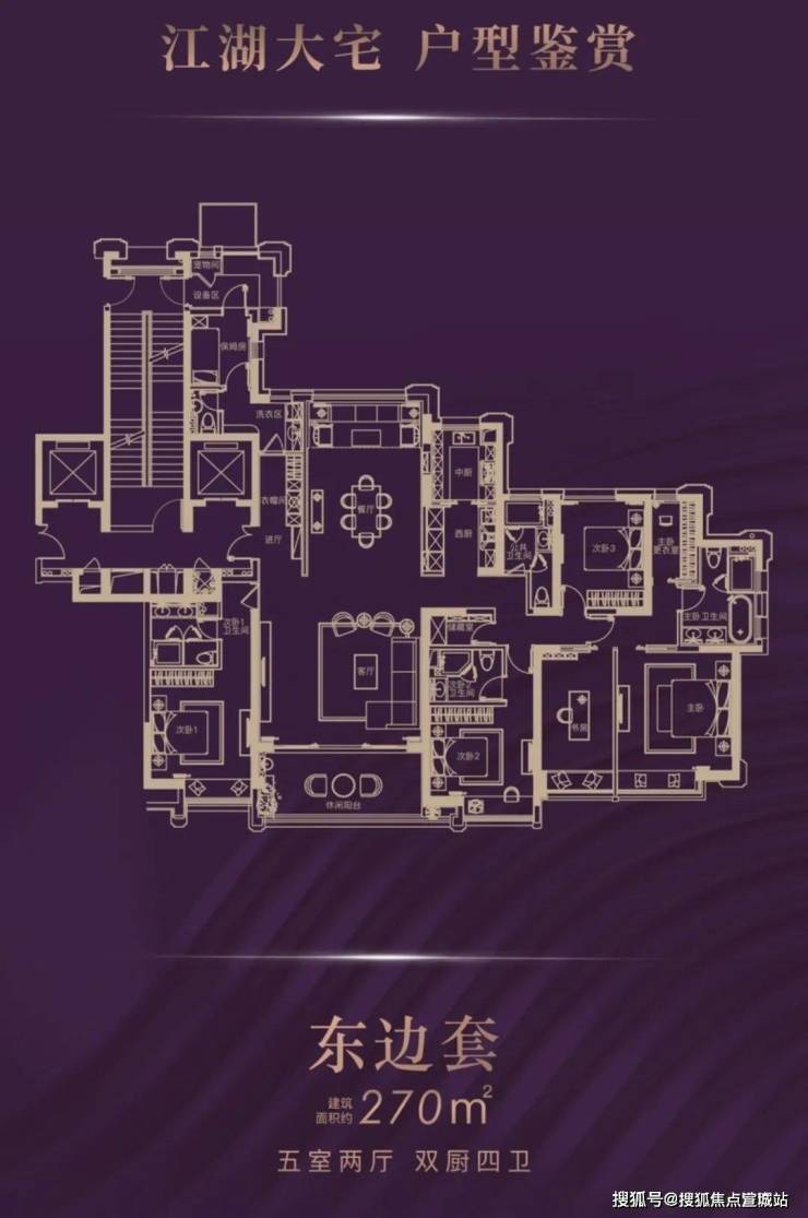 270平做了5室2厅4卫2厨,卧室基本都是带卫生间的套房、还配了一间保姆房。