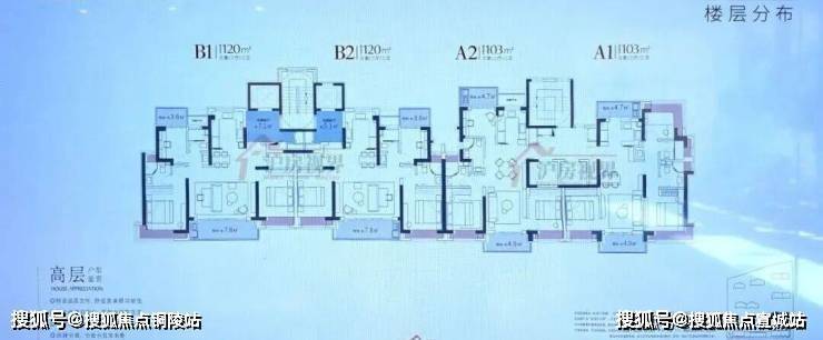 户型建筑层高3.1-3.15米,无连廊,双阳台配置。其中建面约103平户型2梯2户,其余一梯一户。