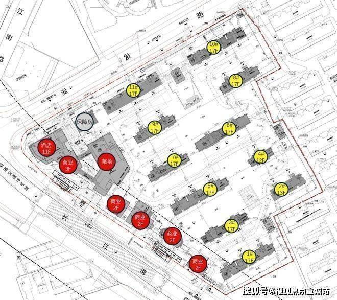 项目总建筑面积18.8万㎡,地上计容总建筑面积12.48万㎡。根据项目规划设计方案:项目拟建11栋12-17层可售住宅,总户数876户,可售住宅约807套;另需建设1栋保障性住宅房,靠近长江南路一侧规划有酒店、商业、菜场、社区食堂等业态。